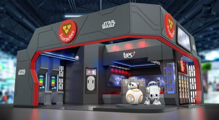 O estande da 3 Corações, inspirado em uma nave imperial, será um ponto de encontro para cosplayers e entusiastas da franquia.