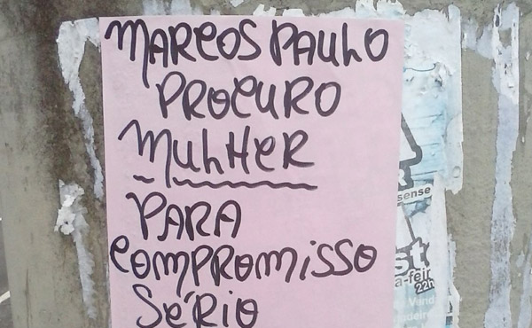 Aqui no Feicebuque nós também gostamos de ajudar pessoas a encontrarem seu par perfeito. Quem já viu os anúncios de Marcos Paulo a procura de uma mulher séria?