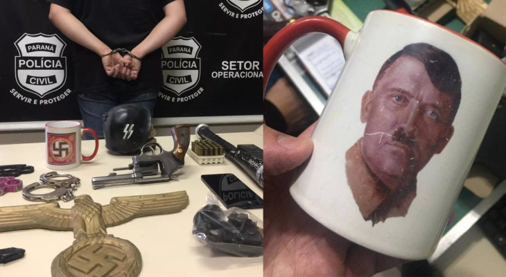 Segundo as informações do G1, o jovem de apenas 23 anos tinha em sua casa uma arma de fogo, objetos com a cruz suástica e uma caneca de Adolf Hitler. A polícia informou que ele fazia publicações sarcásticas e de teor neonazista nas suas redes sociais.