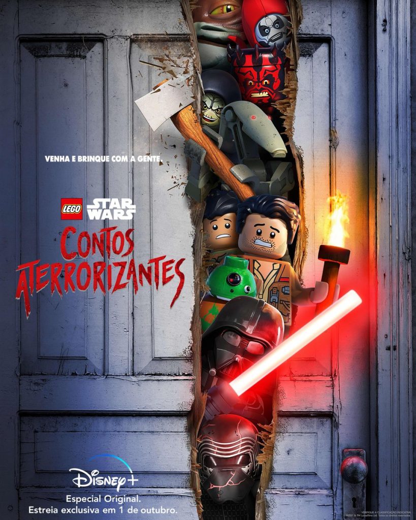 Hoje, LEGO® Star Wars Contos Aterrorizantes estreou exclusivamente no Disney+ para a comemoração anual Hallowstream. O novíssimo e assustadoramente divertido especial da Lucasfilm e LEGO Group com certeza vai deixar os fãs no clima de Halloween. Para comemorar a estreia do especial no streaming, o Disney+ lançou um novo pôster e um clipe repleto de sustos, “On the Dark Side”.