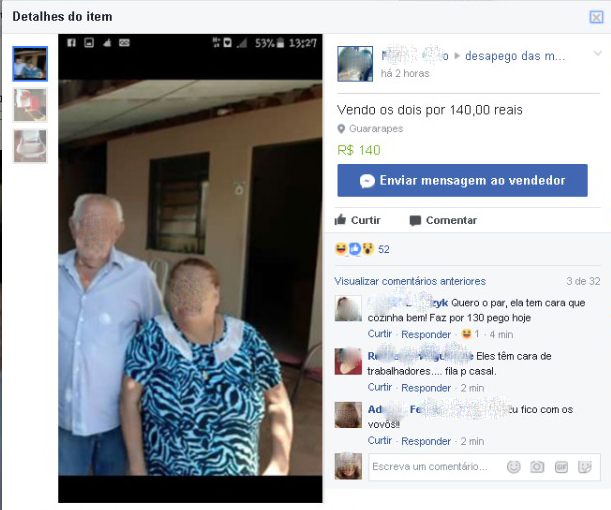 Inacreditável, parece sensacionalismo mas não é: uma mulher está tentando vender seus próprios pais em um grupo de vendas de Ponta Grossa no Facebook.