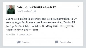 Algumas vezes buscando por casa pra alugar, outras vezes em busca de esposa, namorada, acompanhante… diz até que aceita o mesmo sexo!