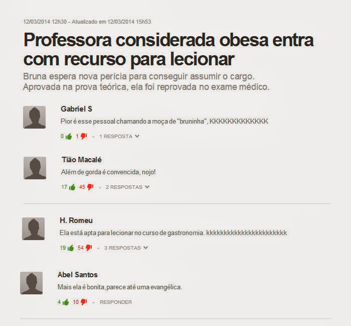 Os piores comentários da página do G1