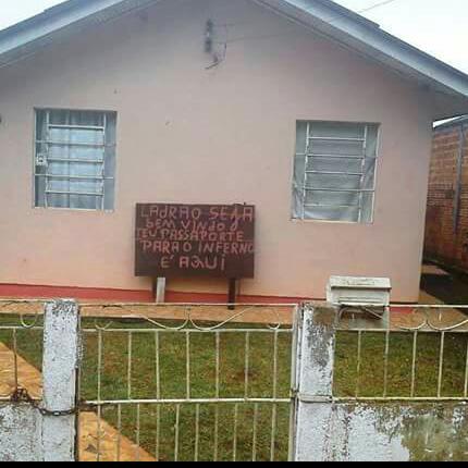 Os habitantes de Ponta Grossa são tão receptivos que até placa de boas vindas para ladrões os moradores colocam na frente das casas.
