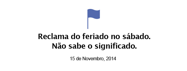 Status do dia: Feriado no Sábado Publicado por Robson Netto 5 Shares Sem categoriaVocê aí, que reclama do feriado no sábado, mas nem sabe qual é o feriado e nem o que ele significa: clica aqui. Curtiu este Post? Deixe a sua Reação! 0 Loco de Bão 0 Amei 0 Ade 0 Oloco 0 Vish 0 Capais Que Tar para você:E agora?